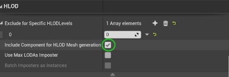 (Optional). You can tag objects to be excluded from HLOD by selecting the actor. Go to Details / HLOD and un-check Include Component for HLOD Mesh Generation.