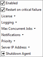 Sets whether the Agent shall process new jobs as they are queued and become available on the Server. A disabled Agent will not do any further processing once its current jobs have run to completion.Restart on critical failure