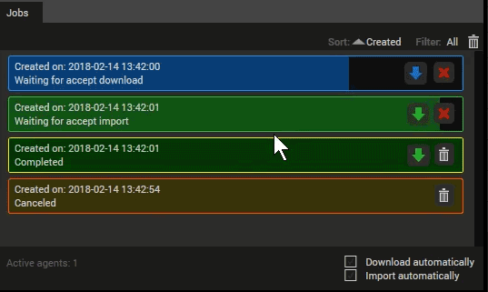 Different job states: Processing, Completed, Awaiting import, Awaiting download, Cancelled and Failed.