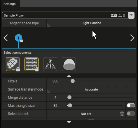 A preset is created by clicking on the New button Simplygon panel at the top right corner of the Settings view. Once the button has been clicked a dialog for creating the preset appears.